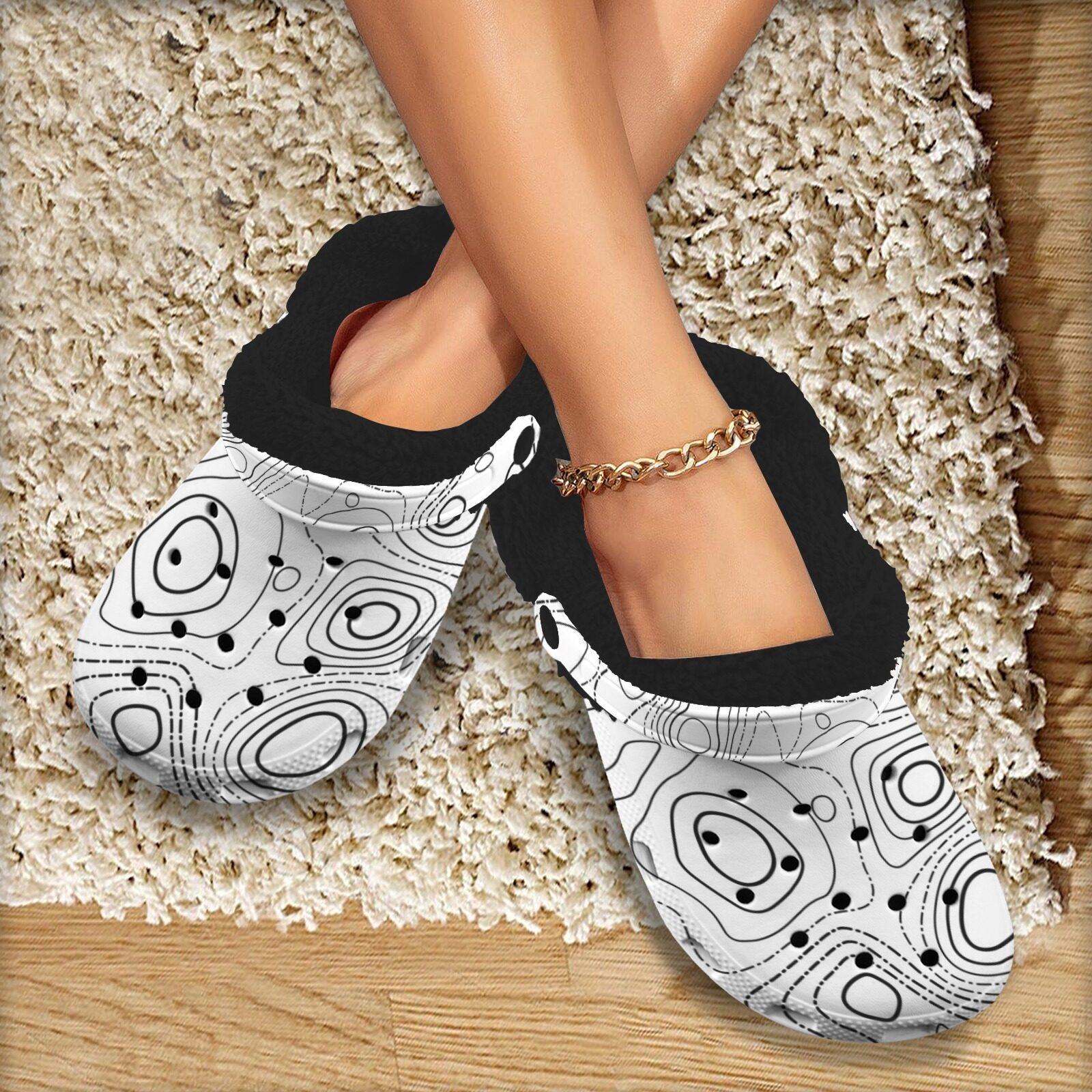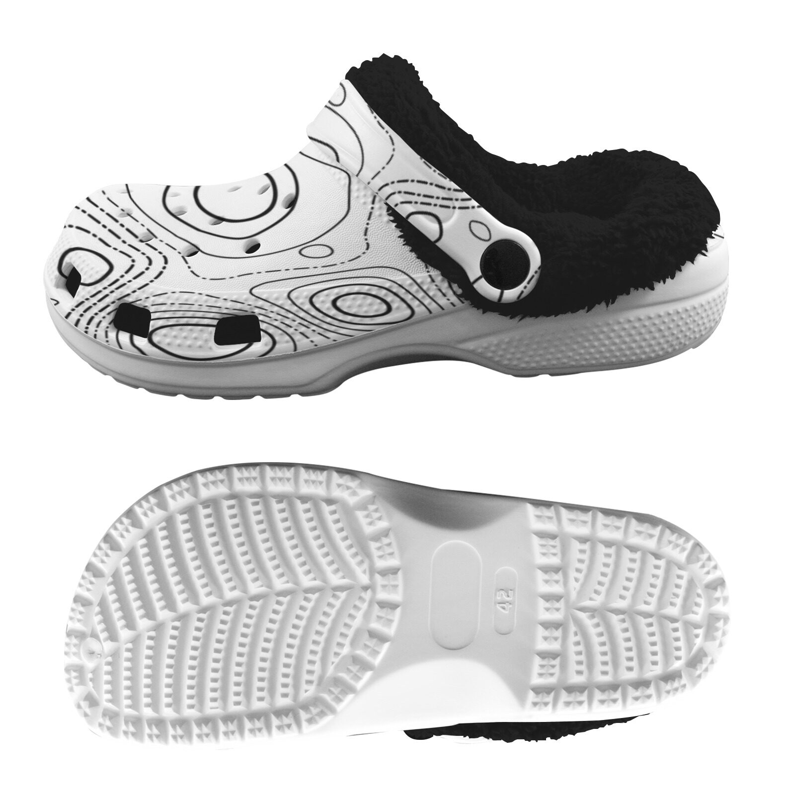 Keep cozy and stylish with these Custom Print Fleece Lined Clogs, designed for comfort, durability, and all-day wear. Featuring a bold all-over print, these clogs are perfect for lounging indoors or stepping outside with ease.