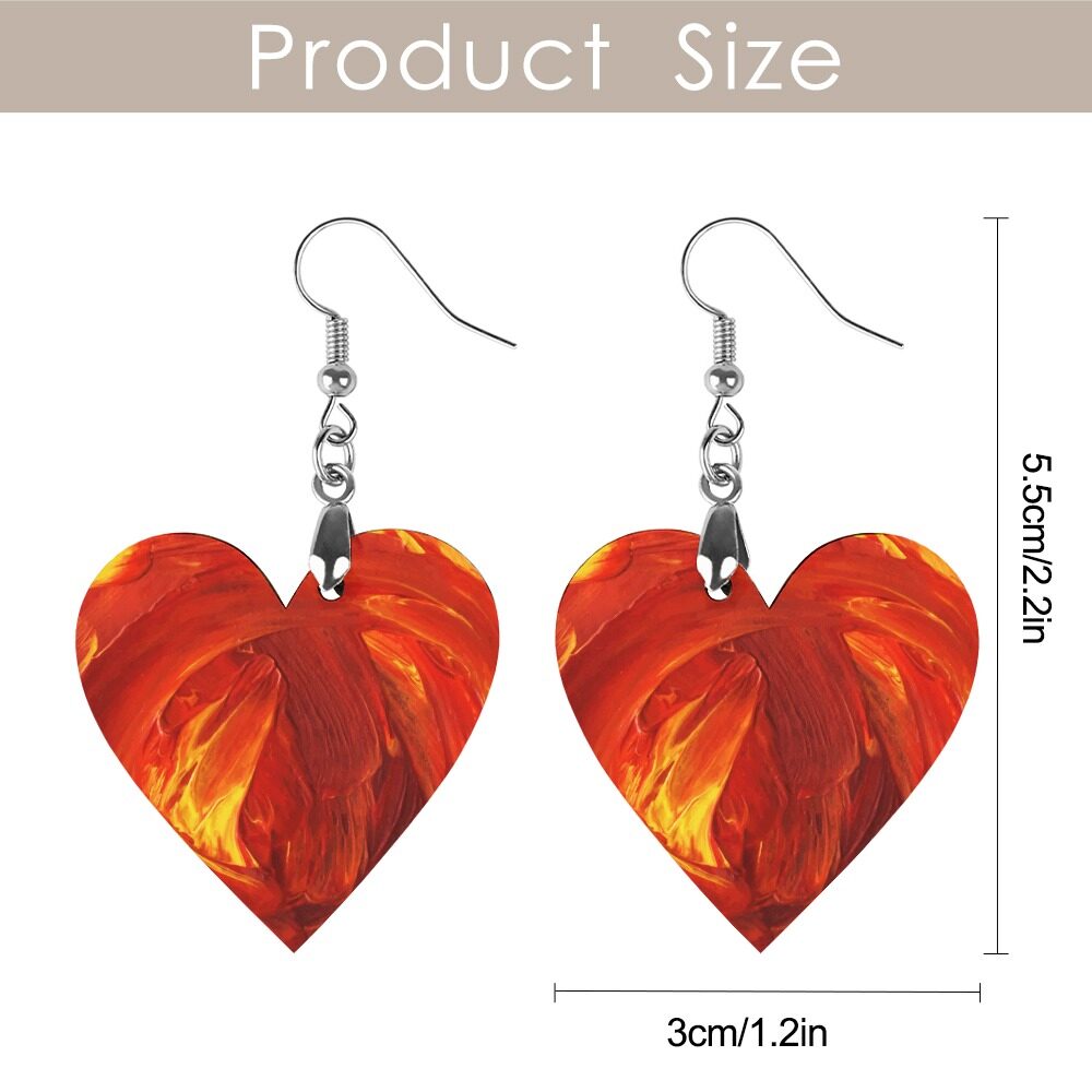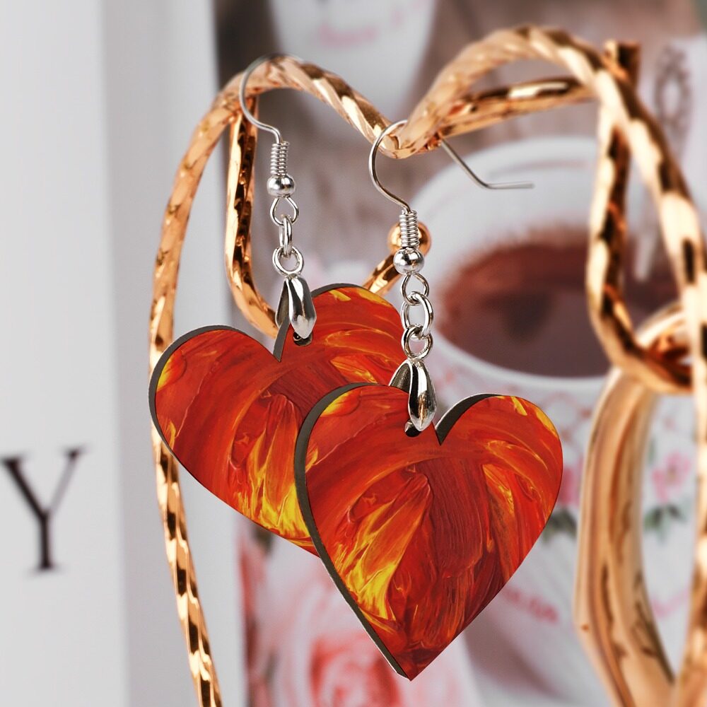 Personality & Fashion: Featuring an exquisite fiery heart-shaped design with bold red and orange abstract patterns, these earrings are stylish, novel, and eye-catching. Perfectly highlighting personality, elegance, and charm.