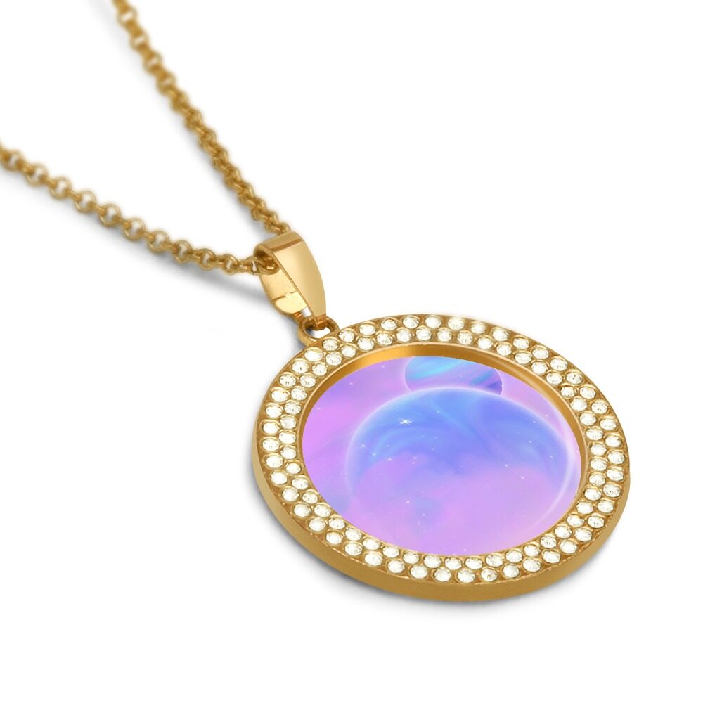 Elevate your style with this elegant alloy necklace, featuring a radiant circular pendant framed with sparkling diamonds. Crafted from high-quality alloy, it boasts high hardness, fine texture, and lightweight comfort for all-day wear. The shimmering diamond inlay enhances its brilliance, making it a versatile piece that seamlessly complements both casual and formal outfits.