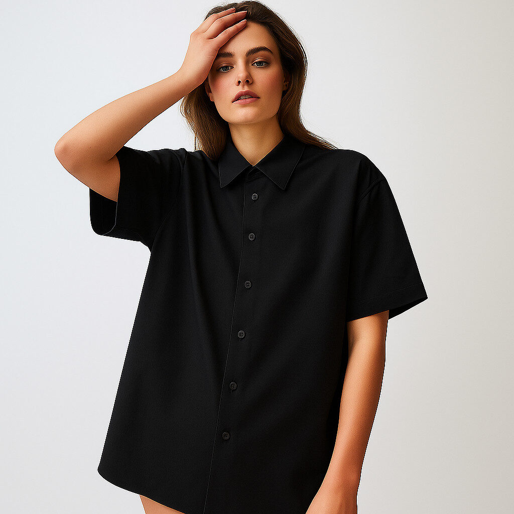 This oversized t-shirt is crafted from 100% cotton with a 240 GSM fabric, offering a crisp yet comfortable weave. The fit is relaxed, designed with half sleeves and a straight hem, making it perfect for layering or wearing on its own with a laid-back style. To keep it in great condition, simply wash inside-out in cold water, dry on low heat, and flip it inside out before ironing.