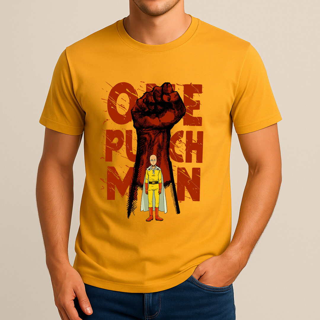 Care Instructions: To preserve the vibrant print and soft fabric feel, wash the T-shirt inside-out in cold water, use a gentle cycle, and dry on low heat. For ironing, turn it inside-out to protect the design from direct heat. With proper care, this tee will keep looking sharp through countless adventures — even if you’re not saving the world with a single punch.