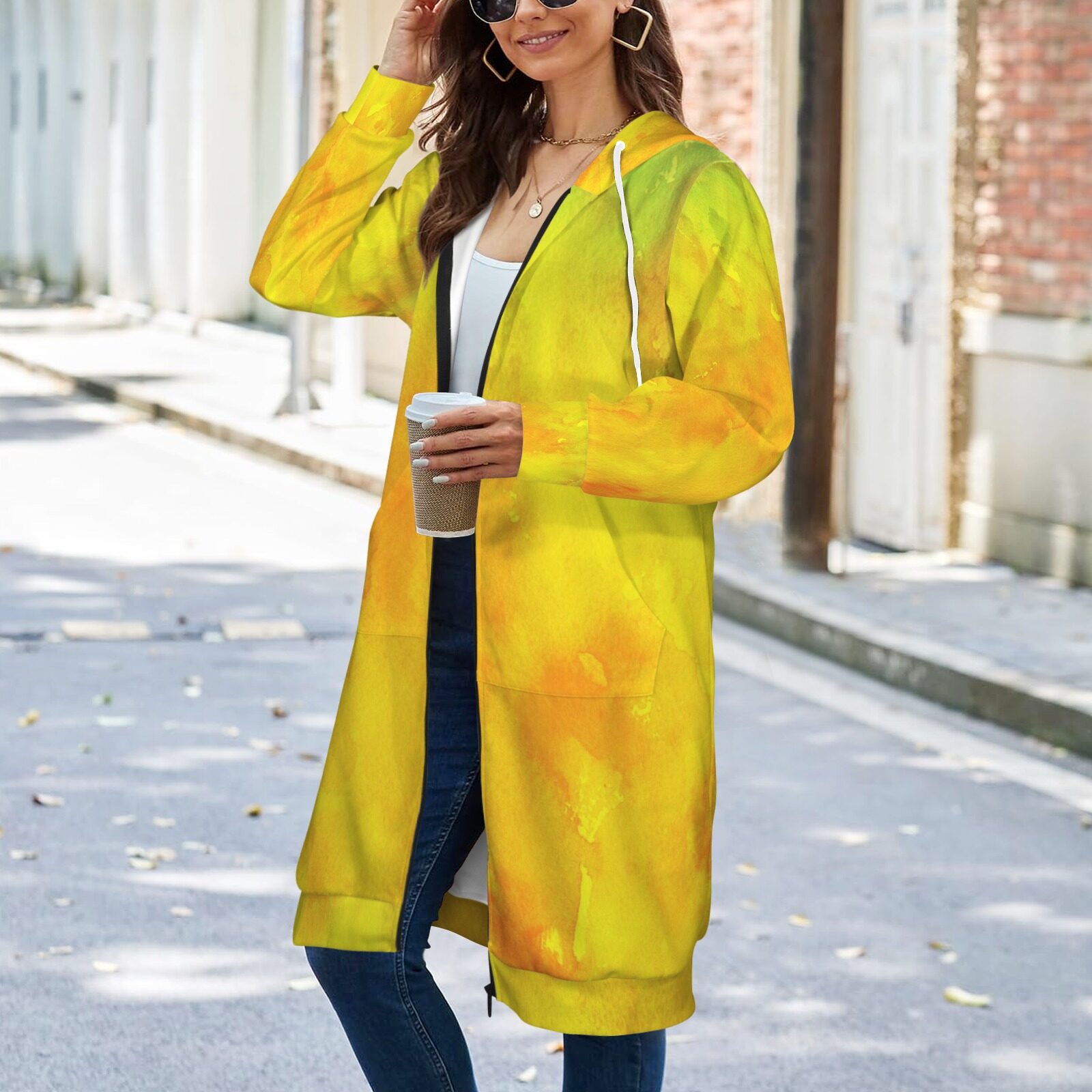Brighten your wardrobe with this bold and vibrant Women’s All Over Print Full Zip Hoodie, designed for both comfort and standout style. Crafted from a premium blend of 95% polyester and 5% spandex, this hoodie offers the perfect mix of stretch, durability, and softness against the skin.